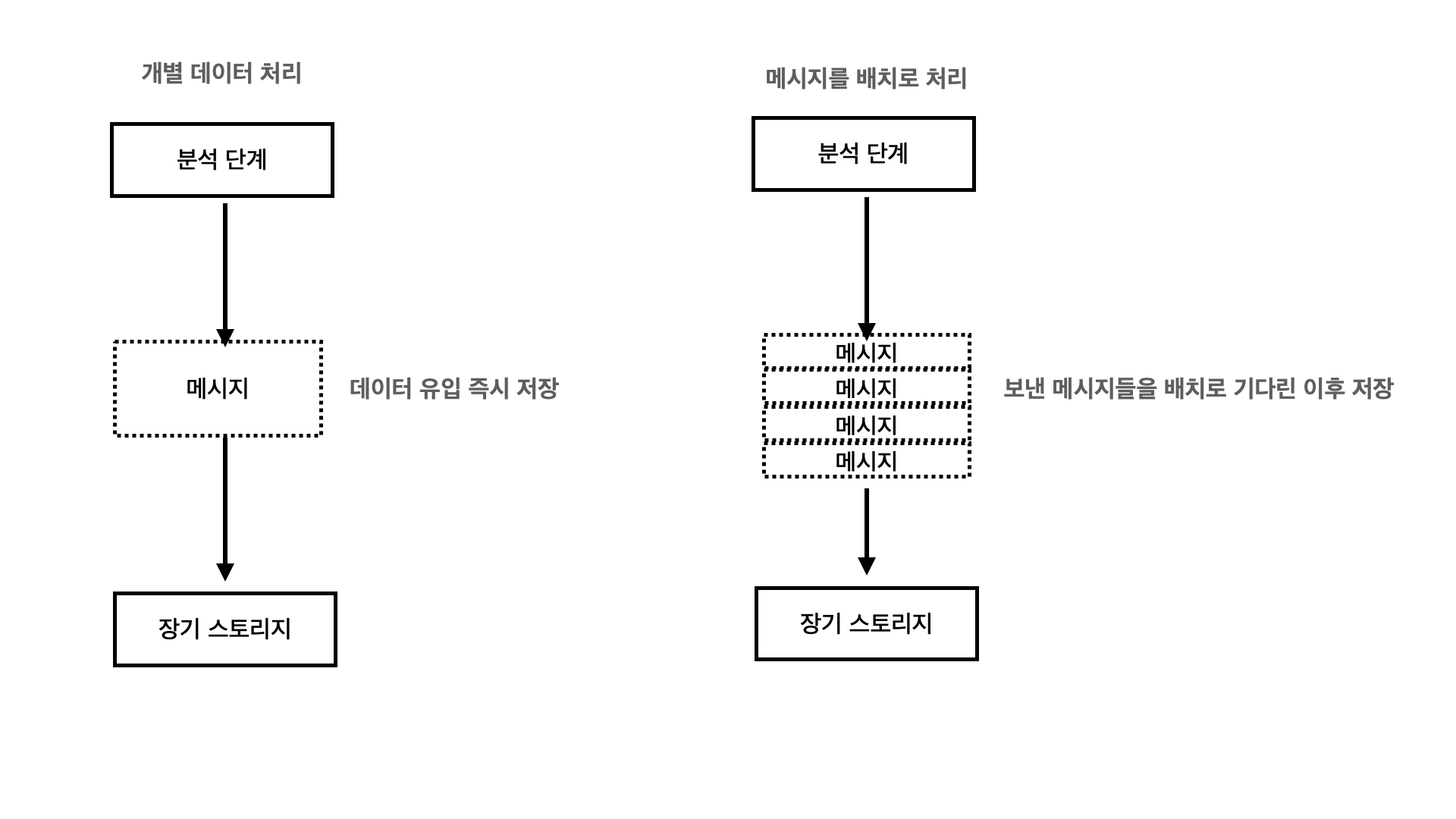 두 방법은 데이터를 빠른 속도로 처리할 경우 데이터의 크기와 속도가 증가하면 대응이 어렵습니다.