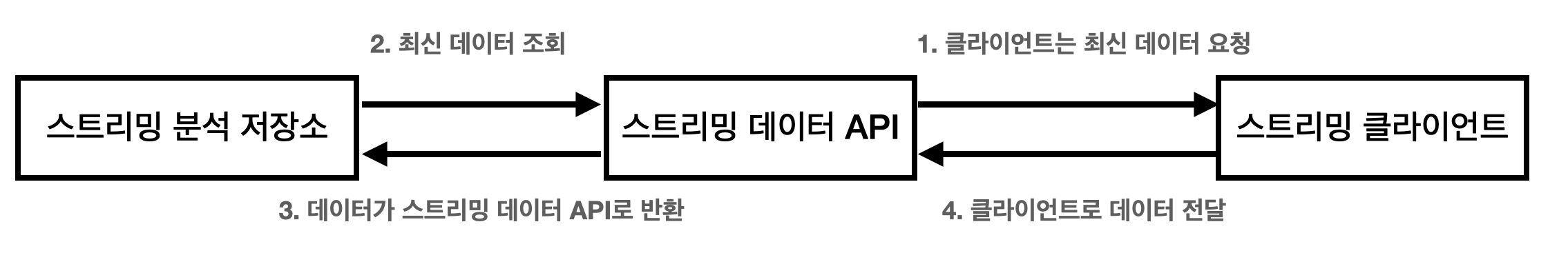 클라이언트는 스트리밍API 서버의 가장 최근에 데이터를 요청하고 응답으로 가장 최신의 데이터만을 전달하는 방식입니다.