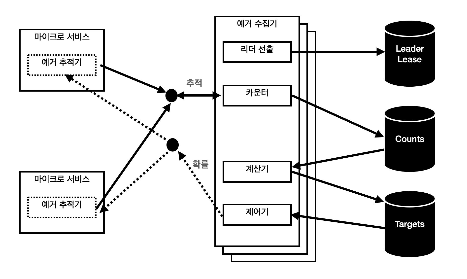 서비스가 새로운 서비스가 배포 될 때, 해당 서비스의 수집기에서는 대상 샘플링 확률 u((t))를 계산할 데이터가 없습니다.