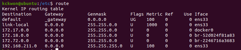 - Gateway : 목적지에 도달하는데 사용되는 게이트웨이