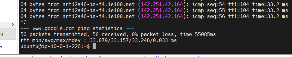 ping 명령어로 nat-gateway정상 작동까지 확인했습니다.