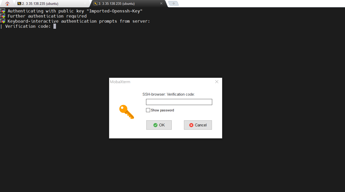 해당 터미널을 나가서 새로운 터미널로 접속하면 otp인증하라는 메시지를 확인 할 수 있습니다.