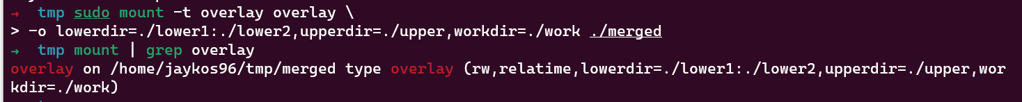 sudo mount -t overlay <마운트명> \