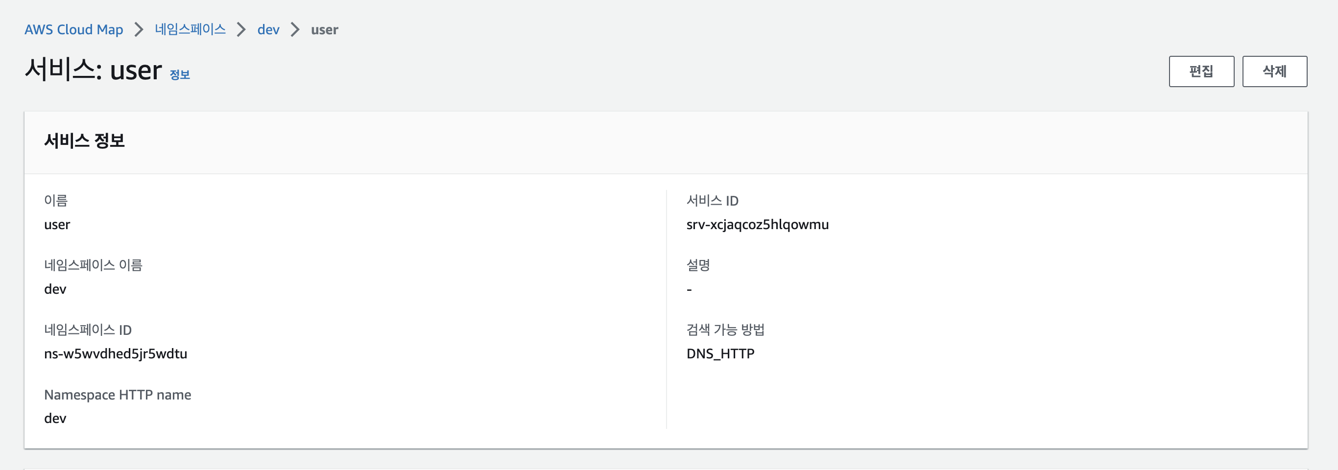 저는 user라는 cloudMap 서비스를 만들었습니다.