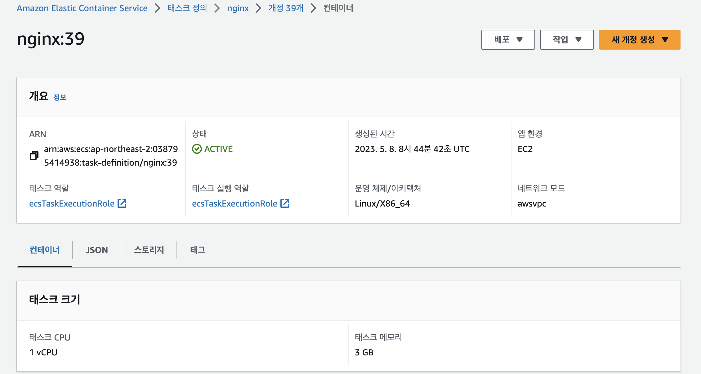 간단한 nginx 이미지로 task를 미리 만들어두었습니다.