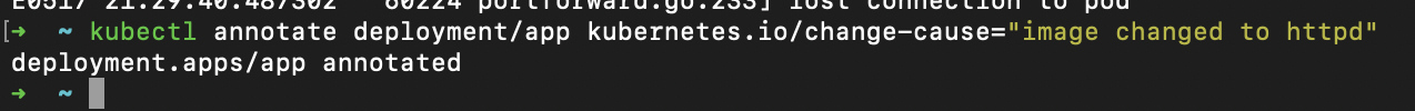 kubectl annotate deployment/app kubernetes.io/change-cause="image changed to httpd"