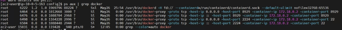 실제 도커의 컨테이너, 볼륨, 네트워크 등 리소스를 관리하는 프로세스는 모두 /usr/bin/dockerd 라는 프로세스로서 동작하고있습니다.