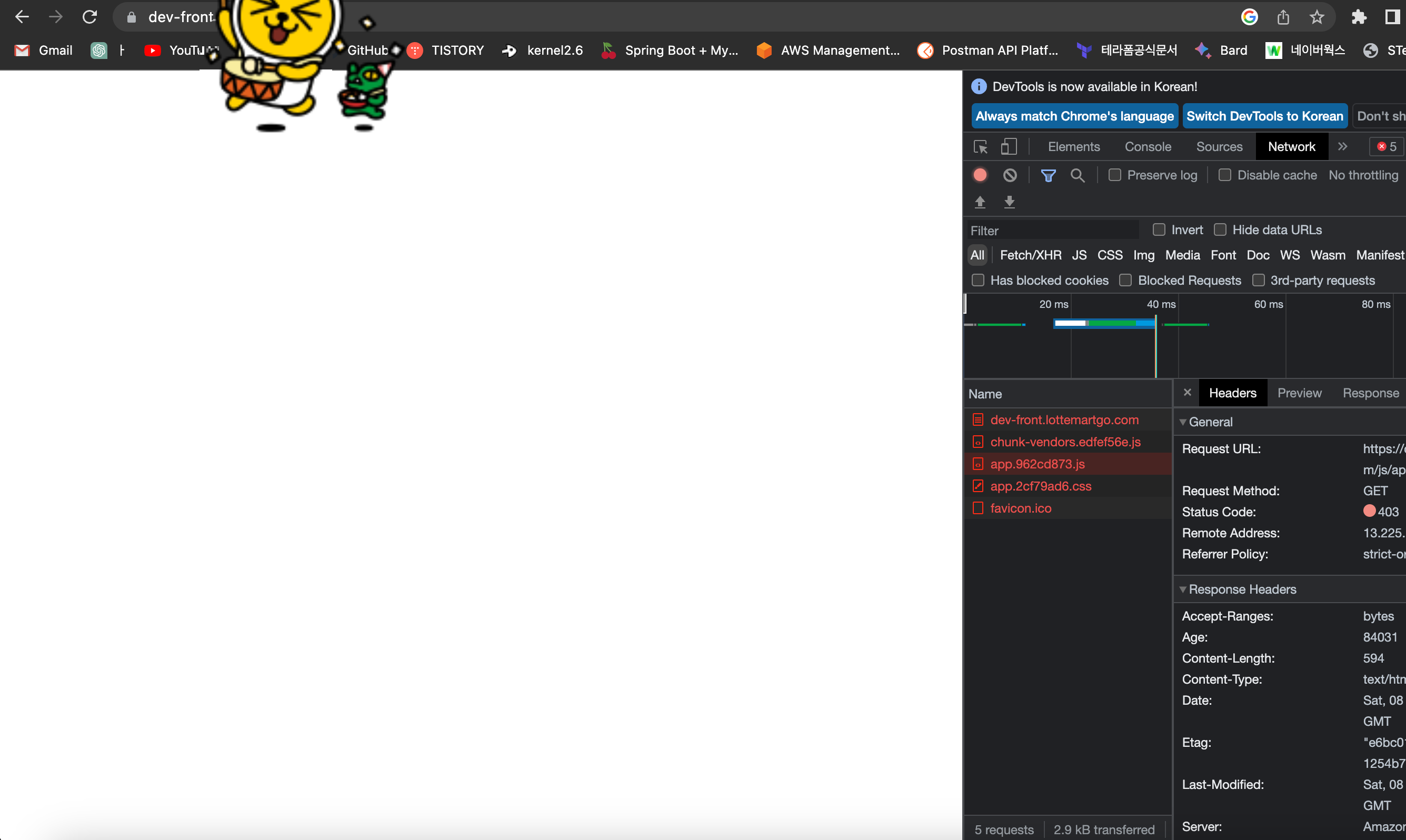 허용된 IP가 아닌 다른 IP주소로 접속했을때 403 Response를 확인 할 수 있습니다.