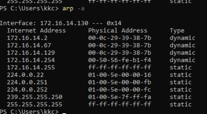 추가로 게이트웨이 아래 172.16.14.67은 공격자(칼리)의 ip입니다.