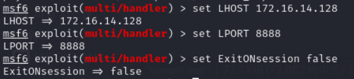 set ExitOnsession false # 타겟과 공격자의 세션이 종료되면 msfconsole이 자동으로 종료되는것 방지