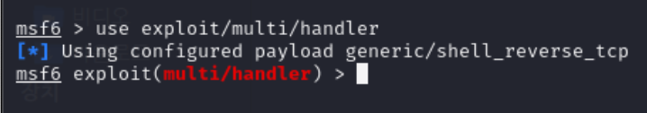 exploit명령어를 통해 핸들러를 실행하고, 세션을 받아들일 상태로 변경합니다.