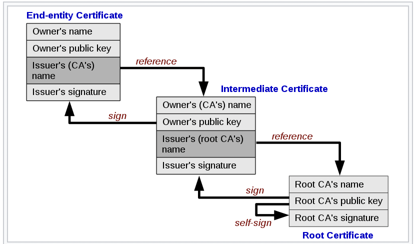 결국 개인인증서의 서명 또한 ICA의 서명을 거쳐 최상위 인증기관의 인증서 Root CA의 서명까지 보증하게 됩니다.