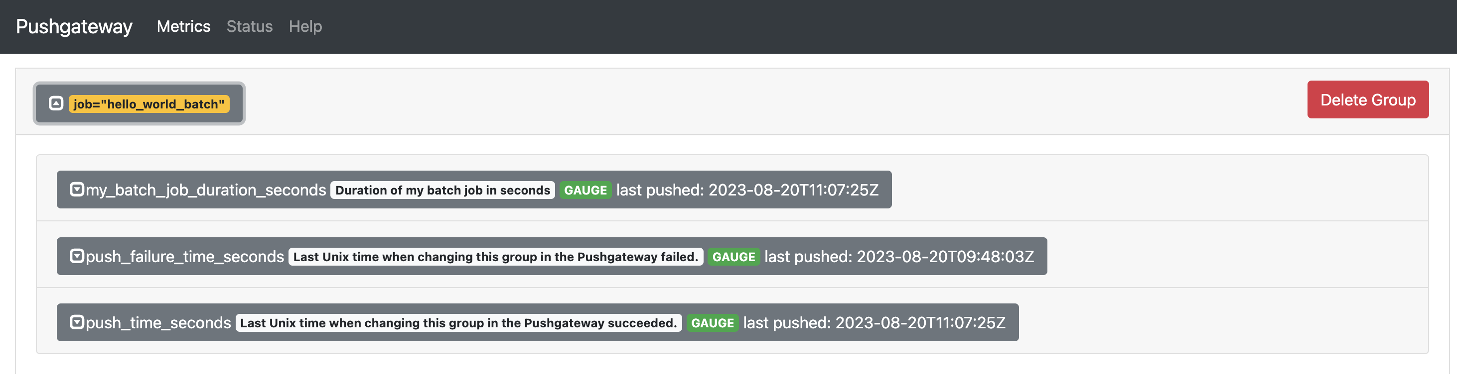 push-gateway의 주소로 들어가 확인해보면 아래처럼 메트릭이 수집되어있는 모습을 볼 수 있습니다.