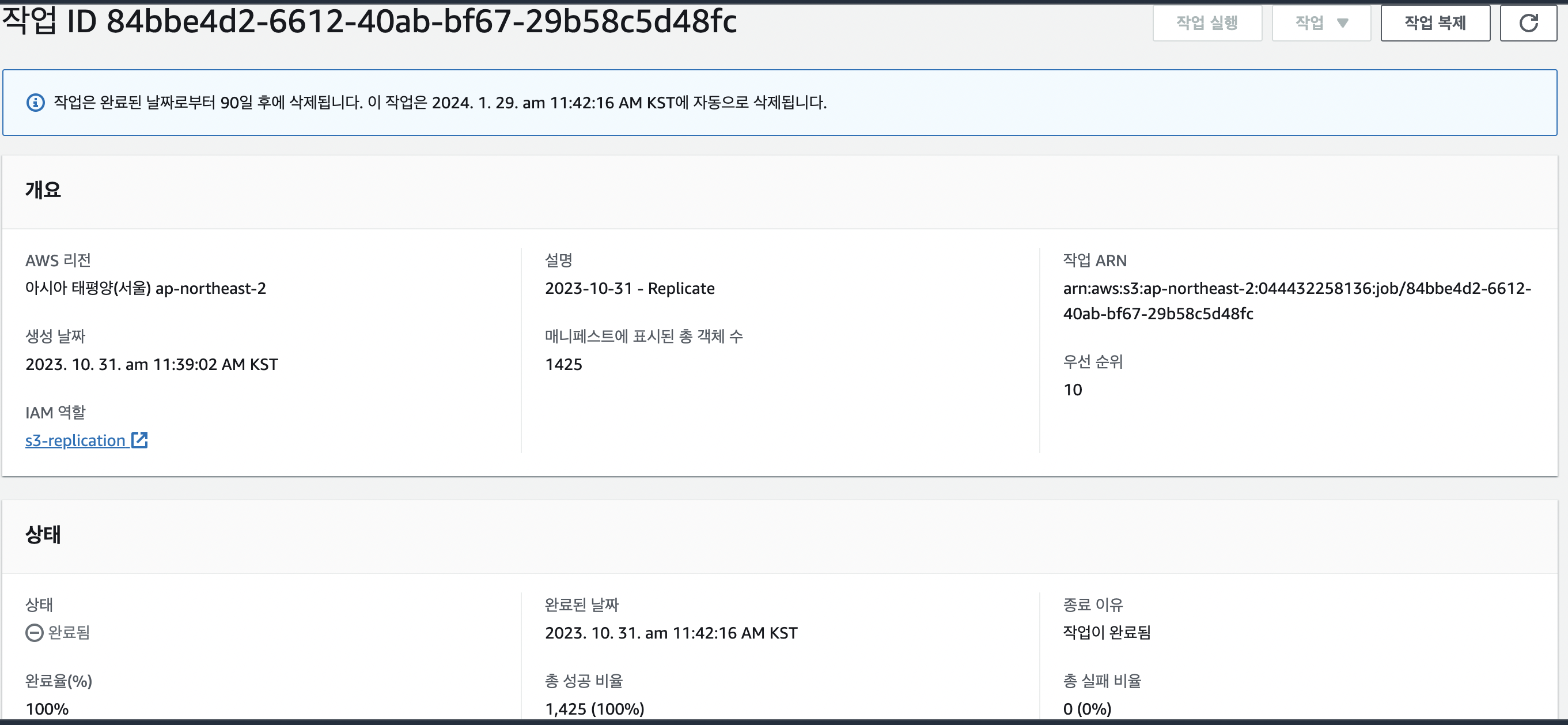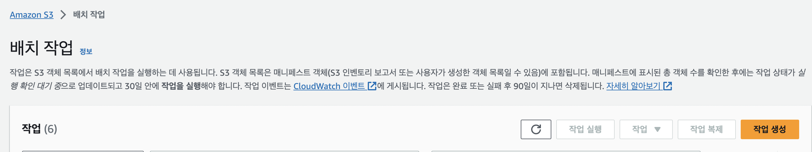 따라서 S3 배치 작업을 통해 기존 데이터를 한번에 옮기는 작업이 필요합니다.