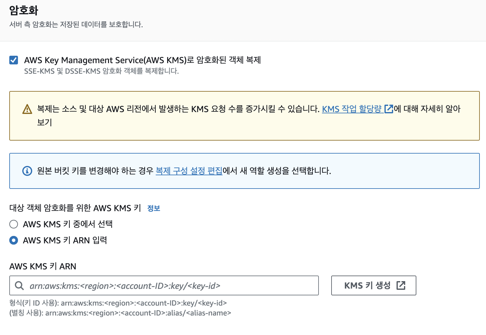 - 복제본 수정 동기화 : 원본 버킷에서 삭제한 객체에 대한 수정를 목적지 버킷에서도 적용합니다.