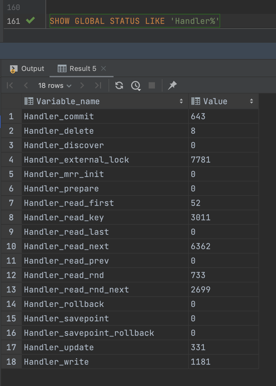 SHOW GLOBAL STATUS LIKE 'Handler%';
