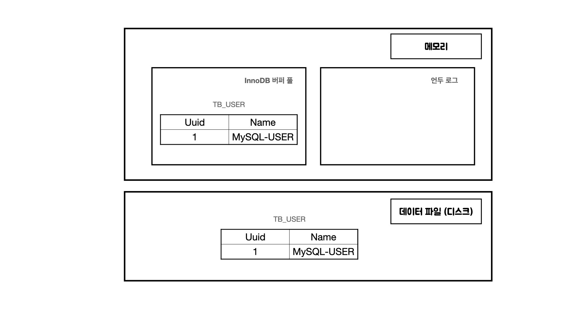 버퍼 풀에 작업한 쿼리 내용이 존재하고 디스크에도 동일하게 존재합니다.