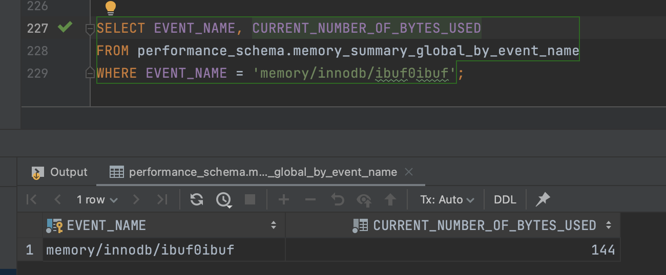WHERE EVENT_NAME = 'memory/innodb/ibuf0ibuf'