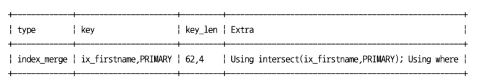 EXTRA 컬럼에 Using intersect 가 표시된다면 '인덱스 머지 교집합'이 사용된겁니다.
