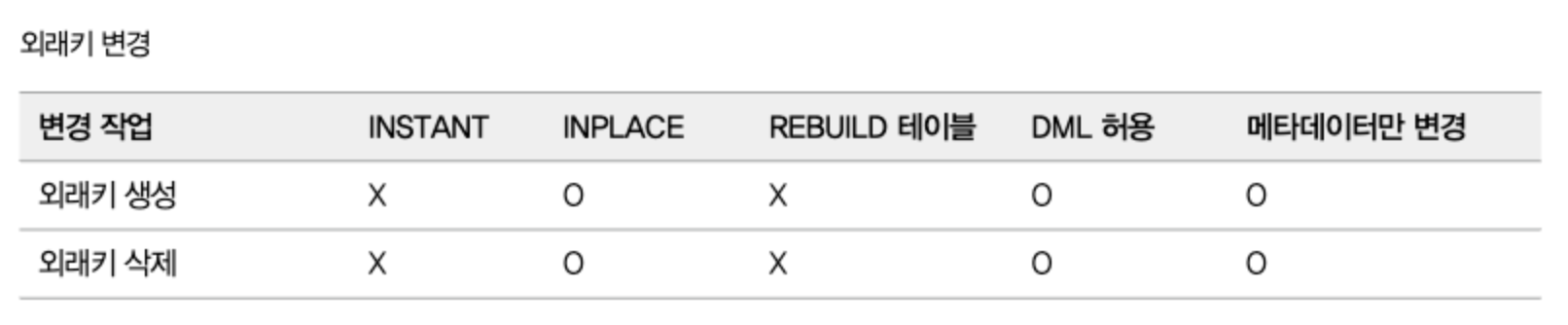 각 작업별 온라인 DDL 알고리즘 처리 방식