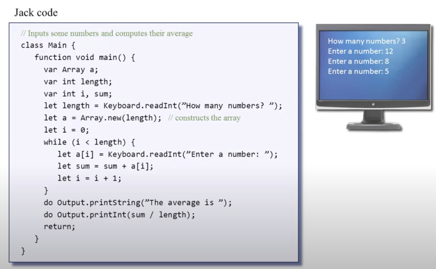 클래스들은 xxx.jack이라는 개별파일에 저장되며, 각각 별도로 컴파일됩니다.