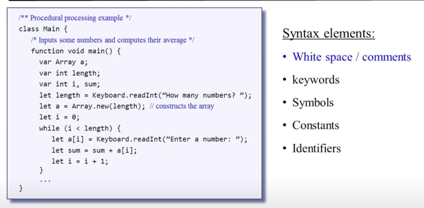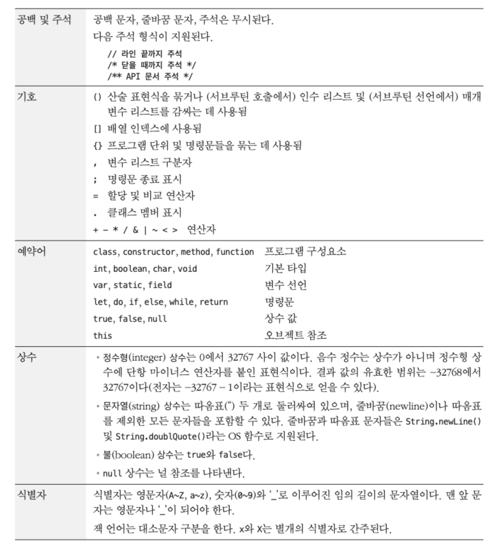 jack 언어에서 임의의 수의 공백, 주석으로 구분되는 기호, 예약어, 상수, 식별자입니다.