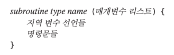 하나의 서브루틴 안에서만 사용되는 로컬 변수, 서브루틴에 전달되는 파라미터 변수 총 4가지가 있습니다.