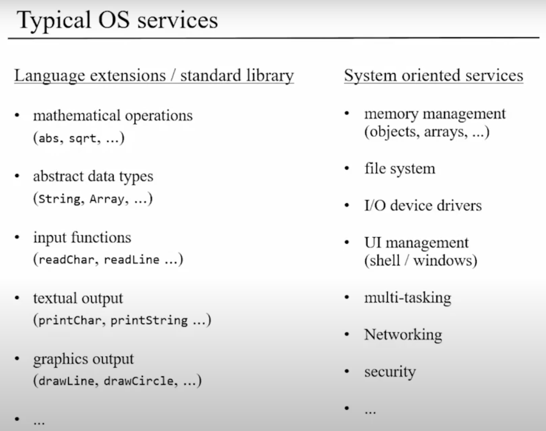 문자열 처리뿐만 아니라 아래 그림 처럼 수학연산, I/O 드라이버, 네트워크 등 운영체제가 하는일들은 많고 다양합니다.