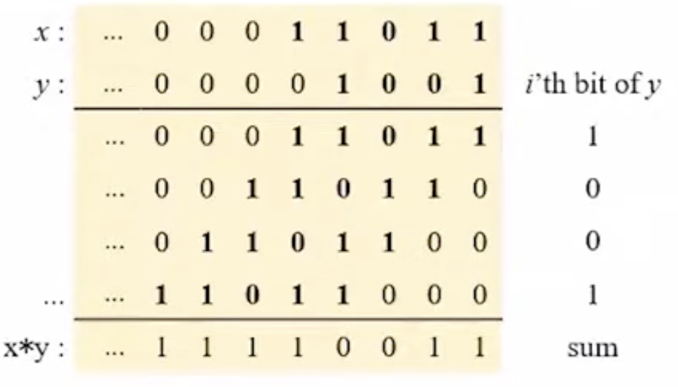 shift가 완료되었다면 y의 값을 세로로 적은다음, y값의 bit가 1인 행들끼리만 더합니다.
