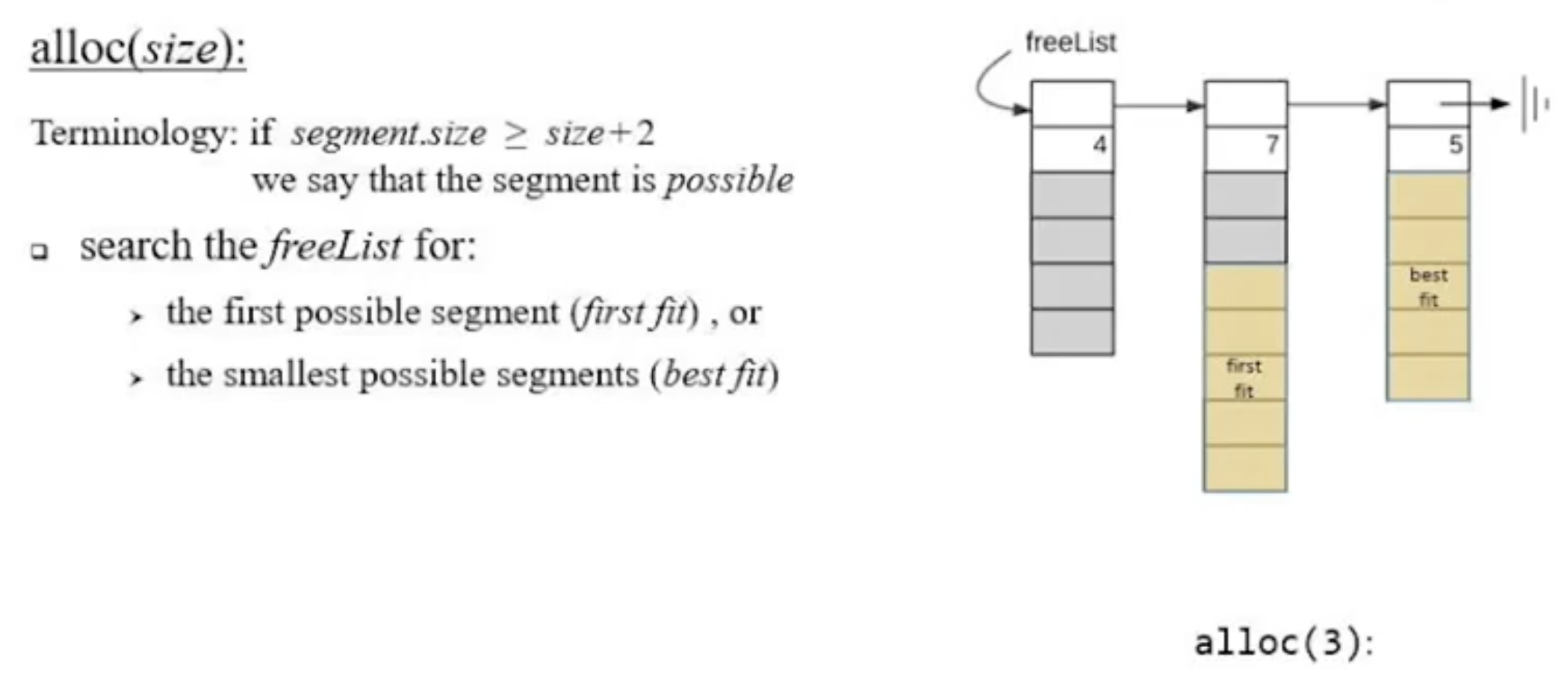 alloc(3)함수가 실행되었을 때 세그먼트의 크기가 size+2보다 크면 해당 세그먼트를 제공합니다.