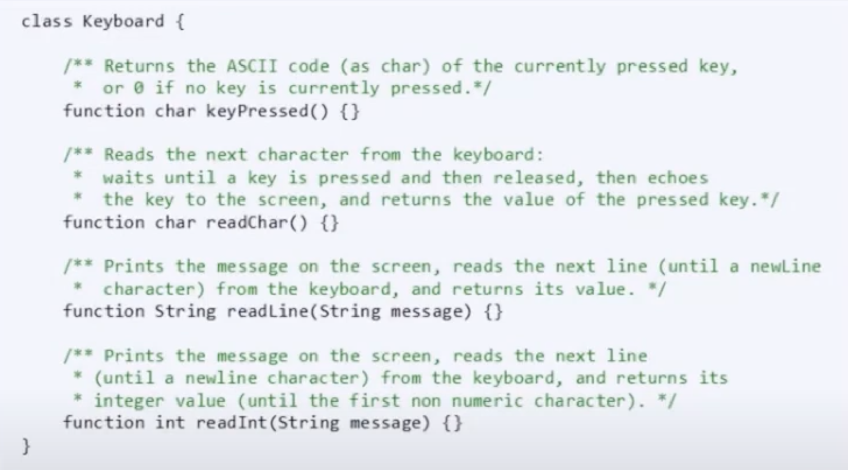 키보드 클래스는 4가지 메소드로 만들어집니다.